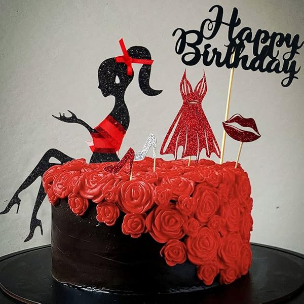 Amazon Com Laventy 6 Pcs Queen Birthday Cake Topper Heels Birthday Cake Topper Lady In Red Cake Topper Dress Cake Topper Lip Birthday Cake Topper Home Kitchen